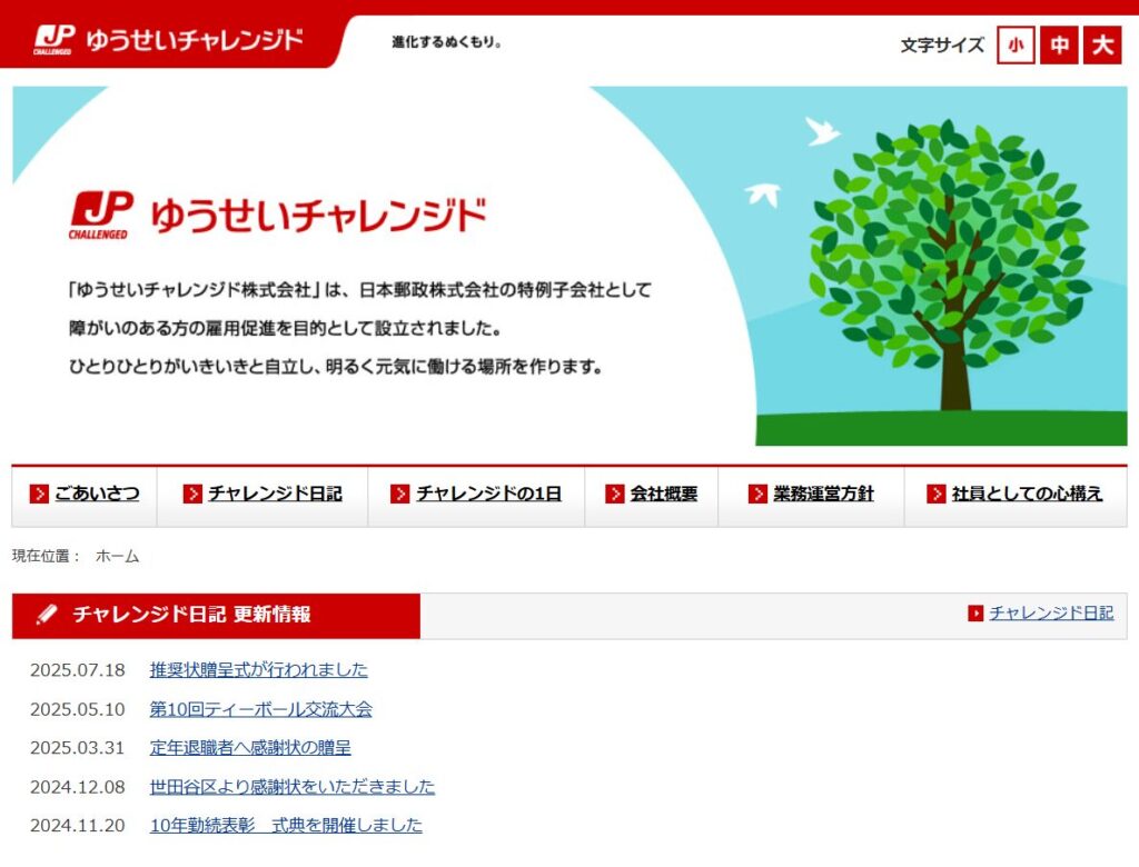 日本郵政グループでは、2007年にゆうせいチャレンジド株式会社を設立しました。厚生労働省の認定を受けた特例子会社であり、障がいのある社員が能力を発揮できるように多様な職域を用意し、グループ全体の法定雇用率達成に大きく貢献しています。