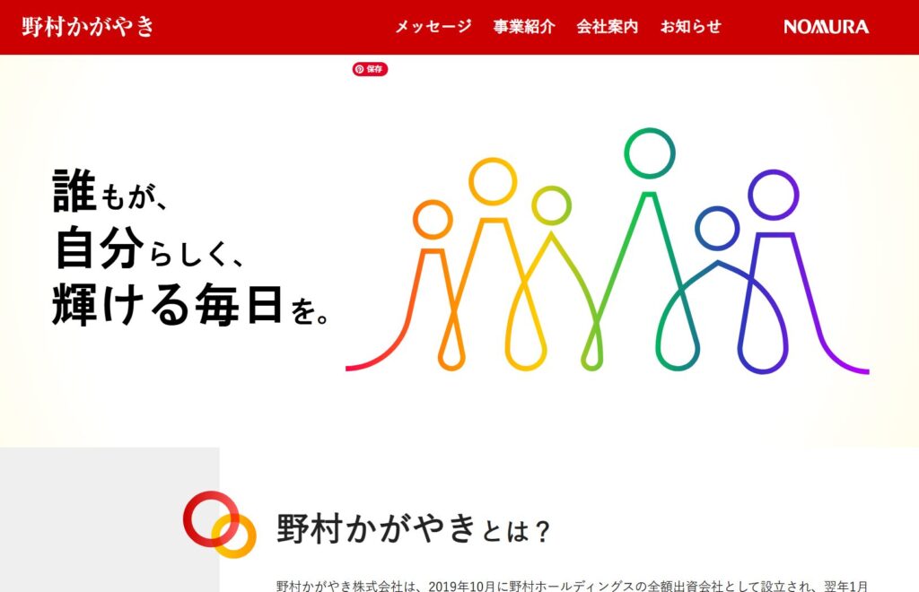 野村グループには、特例子会社として野村かがやき株式会社があります。2019年に設立され、2020年1月に厚生労働省から特例子会社の認定を受けました。野村ホールディングスの100%出資会社として、障がいのある社員が長期的に働ける場を提供しています。