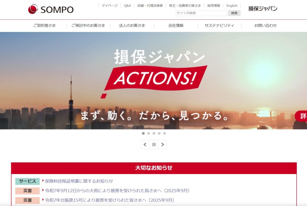 公式サイト | https://www.sompo-japan.co.jp/ |