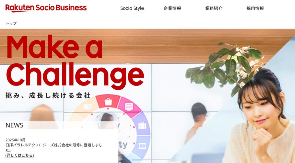 障がい者雇用は特例子会社「楽天ソシオビジネス株式会社」を中心に推進されており、職場環境の整備や定着支援も継続的に行われています。